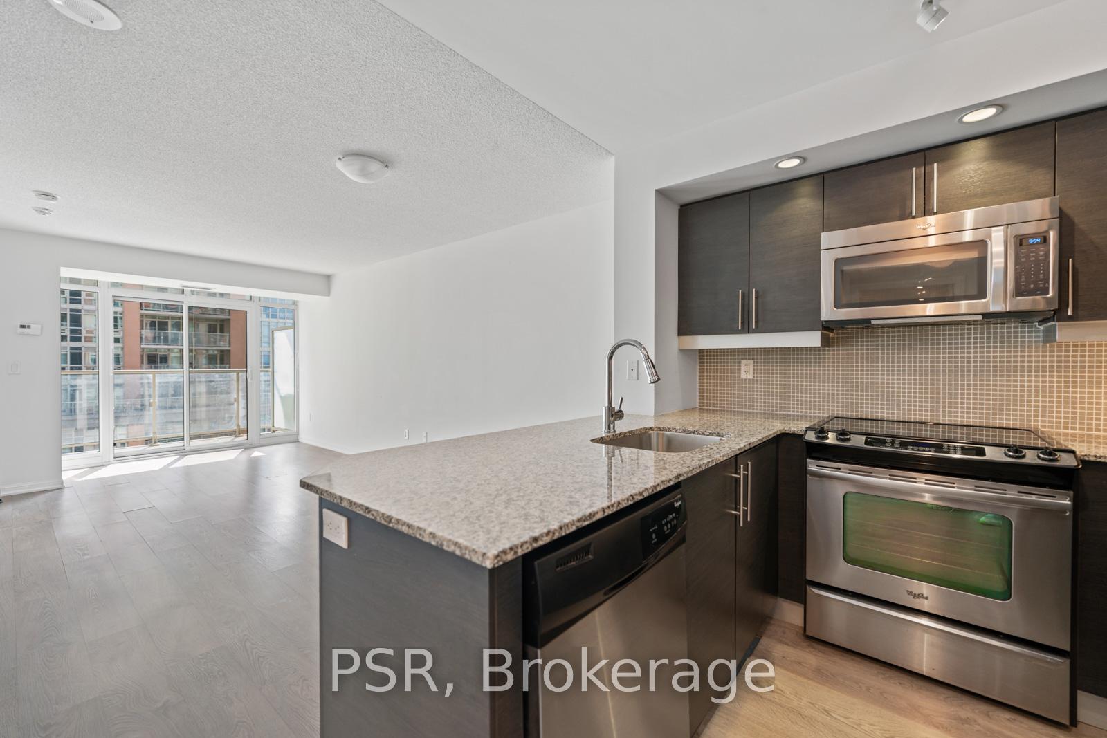 Welcome to Liberty Village Living! Step into this bright and modern 1 bedroom + den, 1 bathroom condo located in one of Toronto's most vibrant neighbourhood Liberty Village. This thoughtfully designed unit offers a functional layout with wide plank flooring, a modern kitchen with granite countertops & stainless steel appliances, and a spacious living area that walks out to your private balcony perfect for your morning coffee or evening unwind. The den provides a versatile space ideal for a home office, reading nook, or guest area, while the primary bedroom features large windows and ample closet space. The unit is filled with natural light and boasts contemporary finishes throughout. Located in a well-managed building with top-tier amenities including a gym, rooftop party room with outdoor terrace and BBQs, indoor swimming pool, movie theatre room, golf simulator, bowling alley, games room, guest suites, 24-hour concierge, and more. Enjoy being just steps to restaurants, bars, shops, Metro grocery, banks, fitness studios, and TTC access. You're also just a short walk to King West, Exhibition Place, the lakefront, and several parks including Liberty Village Park and Trillium Park. Whether you're a first-time buyer, investor, or young professional, this condo offers a stylish and convenient urban lifestyle in one of Toronto's most dynamic communities.
